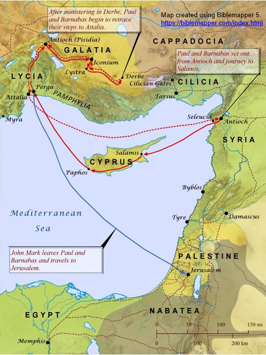Paul and Silas went to Syria and Cilicia while Barnabas and John Mark ministered in Cyprus. Acts 15:39-41 Those places are seen on the map at the top of this post.