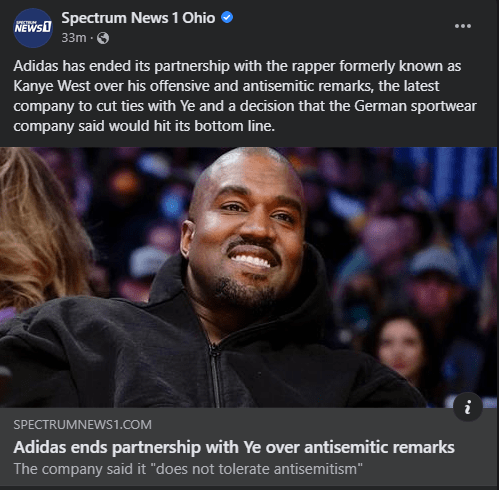 “Adidas is just the latest company to end connections with Ye, who also has been suspended from Twitter and Instagram over antisemitic posts that the social networks said violated their policies.”