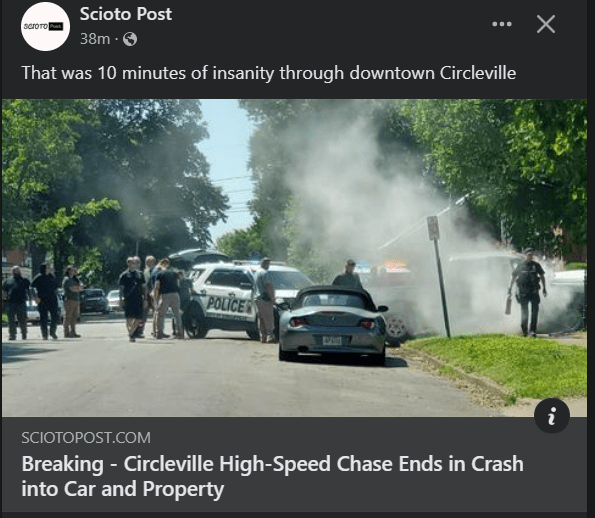Breaking – Circleville High-Speed Chase Ends in Crash into Car and Property.