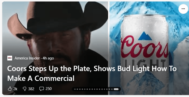 The only reason Bud Light suffered such a devasting financial backlash for using a trans woman in advertising its beer is because of who they were marketing to. Bud light was marketing beer to the LGBQT+ community. In the world we live in today, beer is considered a bad and destructive thing. This anti-Christian society will do everything they can to protect their fruits from rotting. As Coors’ successful advertisement proves, as long as beer is marketed to the American traditional culture of the west then it will lead to financial prosperity.