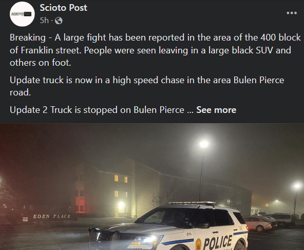 What’s written below is the only information on the Circleville brawl so far. This is about a mile from my front door.