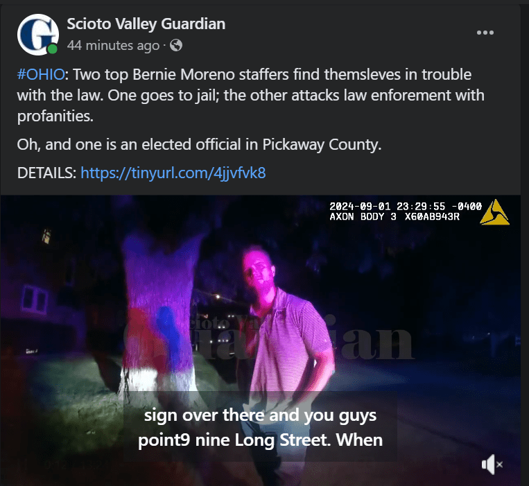 ASHVILLE, Ohio — Colton Henson, a Republican strategist and councilman for the Village of Ashville, who also serves as a top aide to U.S. Senate Candidate Bernie Moreno, was involved in a dramatic traffic stop this month that escalated into a significant confrontation. Henson’s girlfriend, Abby Wright, also a prominent political strategist for Moreno, was arrested during the incident.