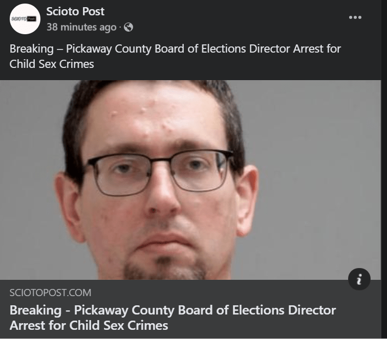 Circleville is inundated with corruption everywhere. The person mentioned in this article was positioned as the Pickaway County Board of Elections Director despite having a prior conviction as a sex offender and placed on the sex offender registry. Now, while serving as the Director of the Board of Elections, he has been charged with the rape of a child.