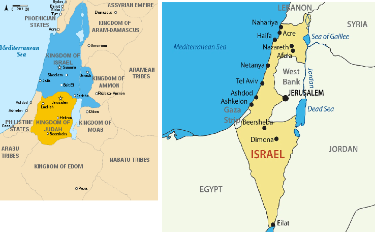 Those of Mount Seir decided that they would claim the two nations of Israel and Judah as their own, even though that territory was specifically claimed by God. Below are two images. The image to the left shows the country of Israel and Judah during the time of Ezekiel. The image to the right is how the State of Israel looks today. As you can see, Mount Seir intended to make the earthly promised land their possession.