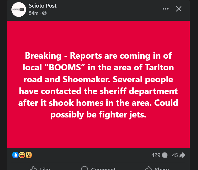 Some of the places mentioned in the FaceBook comments are Waverly, about 40 miles south, Bainbridge is about 25miles south then about 10 miles east, Chillicothe is about 25 miles south, then there is Rockbridge, Massieville, Westfall Rd, Stoutsville, and more places from all around.