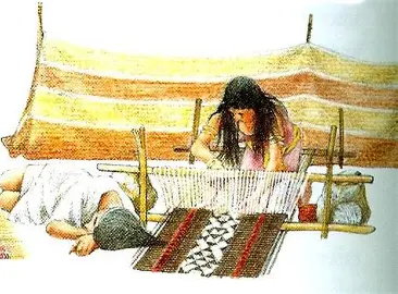 The picture below shows Samson’s hair being weaved into a piece of fabric by Delilah.