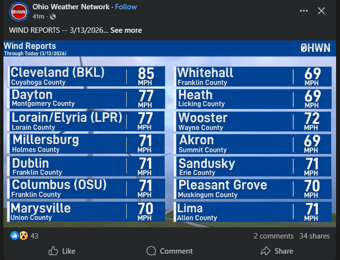 There are many more pictures from all around Ohio of the impact of high winds…